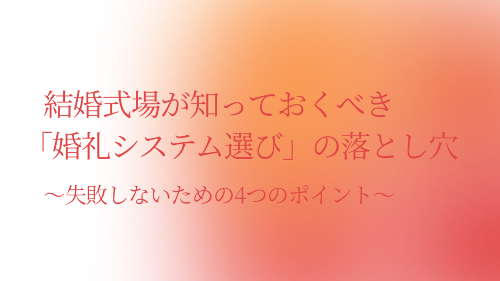結婚式場が知っておくべき「婚礼システム選び」の落とし穴。失敗しないための4つのポイント